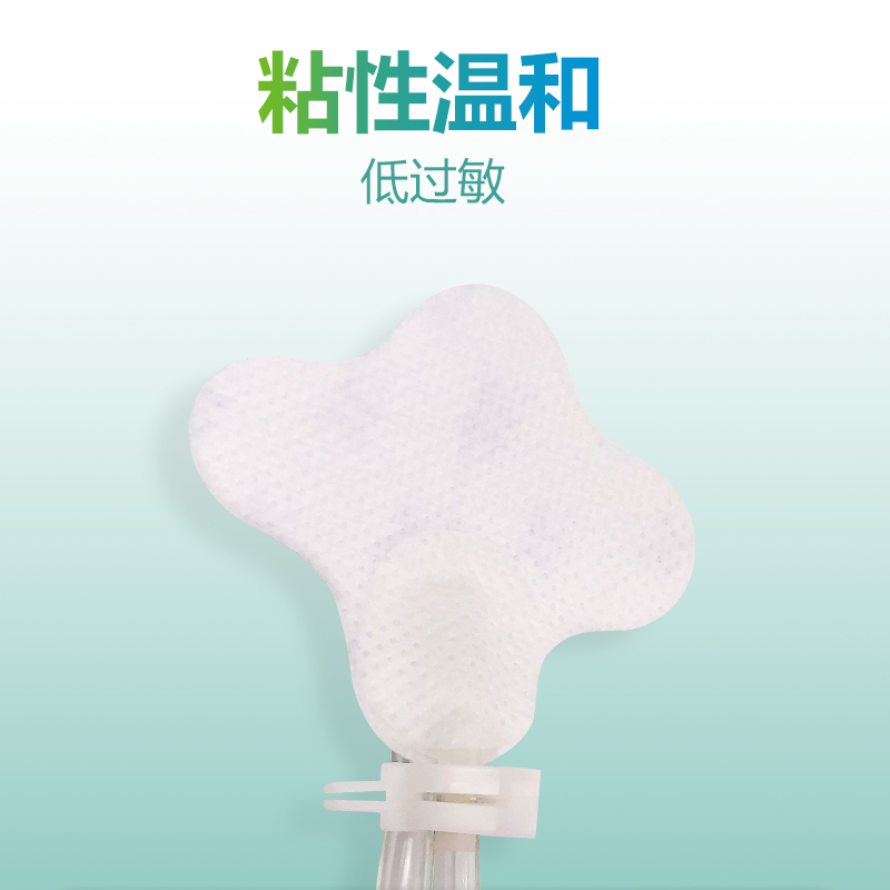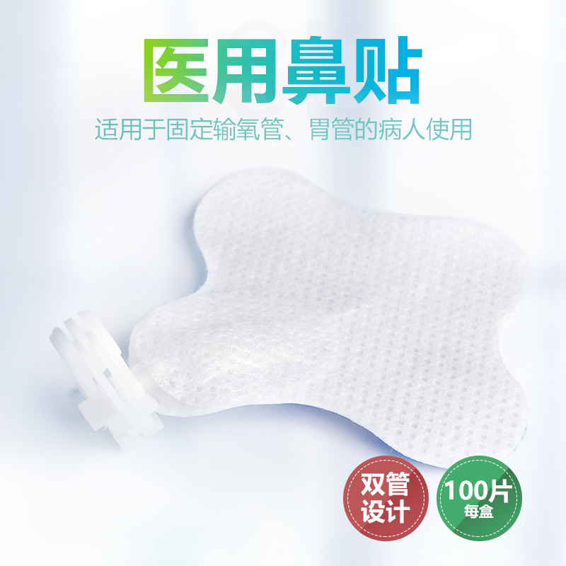 医用鼻贴:由无纺布、医用压敏胶、夹管器、隔离纸制成。供需固定输氧管或胃管的病人使用。