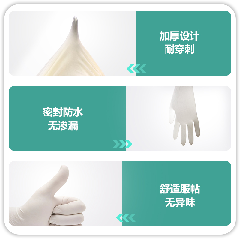 检查手套:由天然橡胶胶乳材料制成。为医疗检查过程中穿戴于检查者手部的用品,防止医生与患者之间的交叉感染。